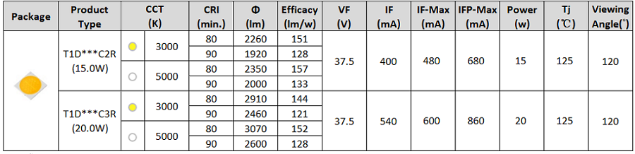 • 高可靠性EMC封装产品,完美平衡光效,可靠性,照明质量及综合成本优势