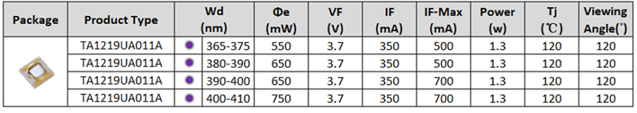 • 高光功率密度UV LED