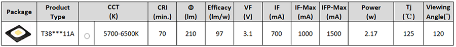 产品特点: • 使用高导热陶瓷基板 • 高流明输出及高光效 • 低热阻 • 耐高电流驱动 • 符合AEC-Q101可靠性测试